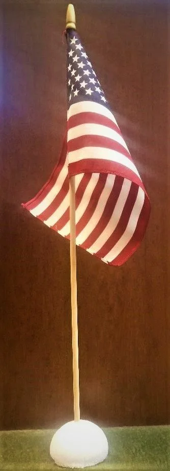 Small American Flags, approximately 24 inches tall, are available, upon request, for free in our Office.